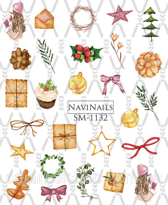 Слайдер дизайн для нігтів з білою підкладкою та малюнком мікс SM-1132 Новий Рік зима